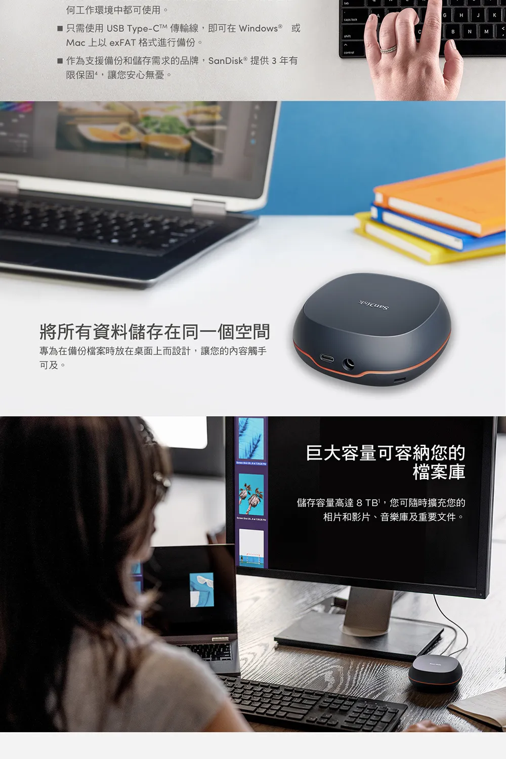 GHJcaps lock何工作環境中都可使用。 只需使用 US Type- 傳輸線,即可在Windows® 或Mac exFAT 格式進行備份。 作為支援備份和儲存需求的品牌,SanDisk® 提供3年有限保固,讓您安心無憂。將所有資料儲存在同一個空間專為在備份檔案時放在桌面上而設計,讓您的內容觸手可及。BNM巨大容量可容納您的檔案庫儲存容量高達8TB,您可隨時擴充您的相片和影片、音樂庫及重要文件。
