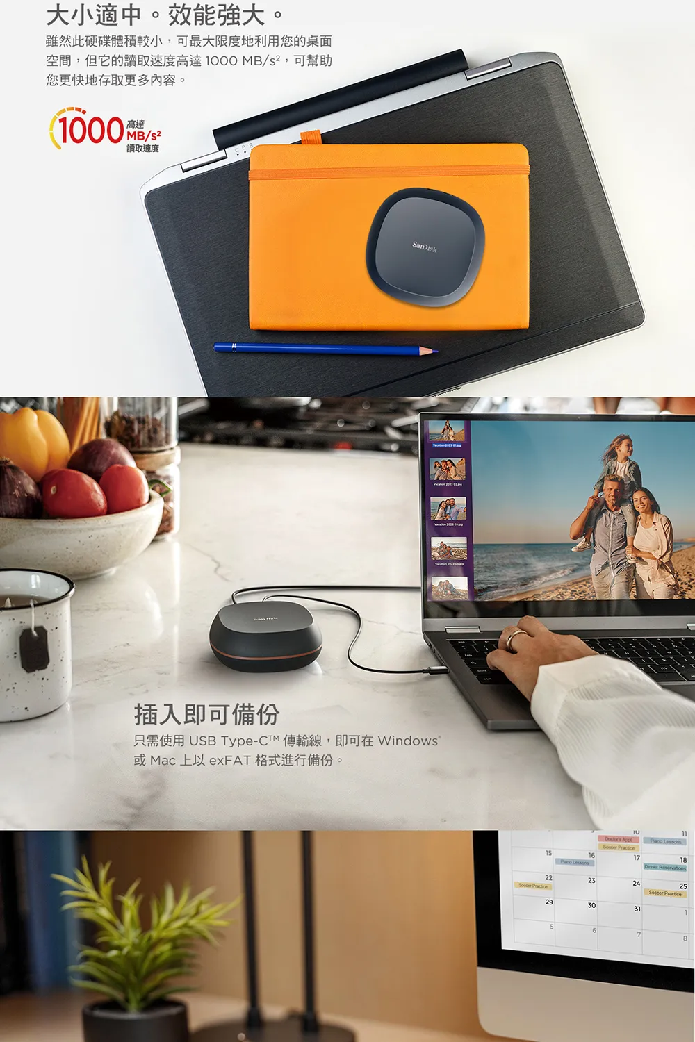 大小適中。效能強大。雖然此硬碟體積較小,可最大限度地利用您的桌面空間,但它的讀取速度高達 /,可幫助您更快地存取更多內容。00 MB/讀取速度插入即可備份只需使用USB Type- 傳輸線,即可在Windows或Mac上以 exFAT 格式進行備份。1011 15 22 29161718 Reservations232425 303168