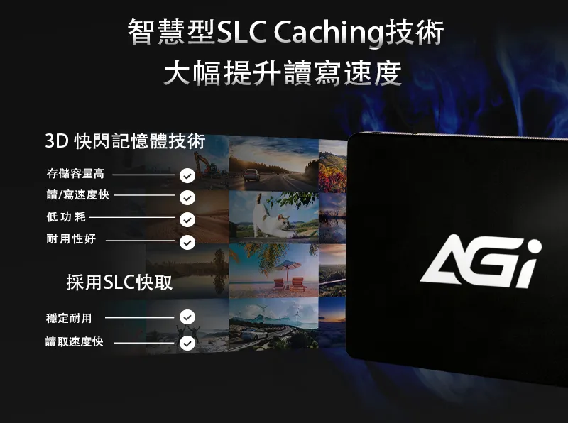 智慧型SLC Caching技術大幅提升讀寫速度3D 快閃記憶體技術存儲容量高讀/寫速度快低功耗耐用性好採用SLC快取穩定耐用讀取速度快